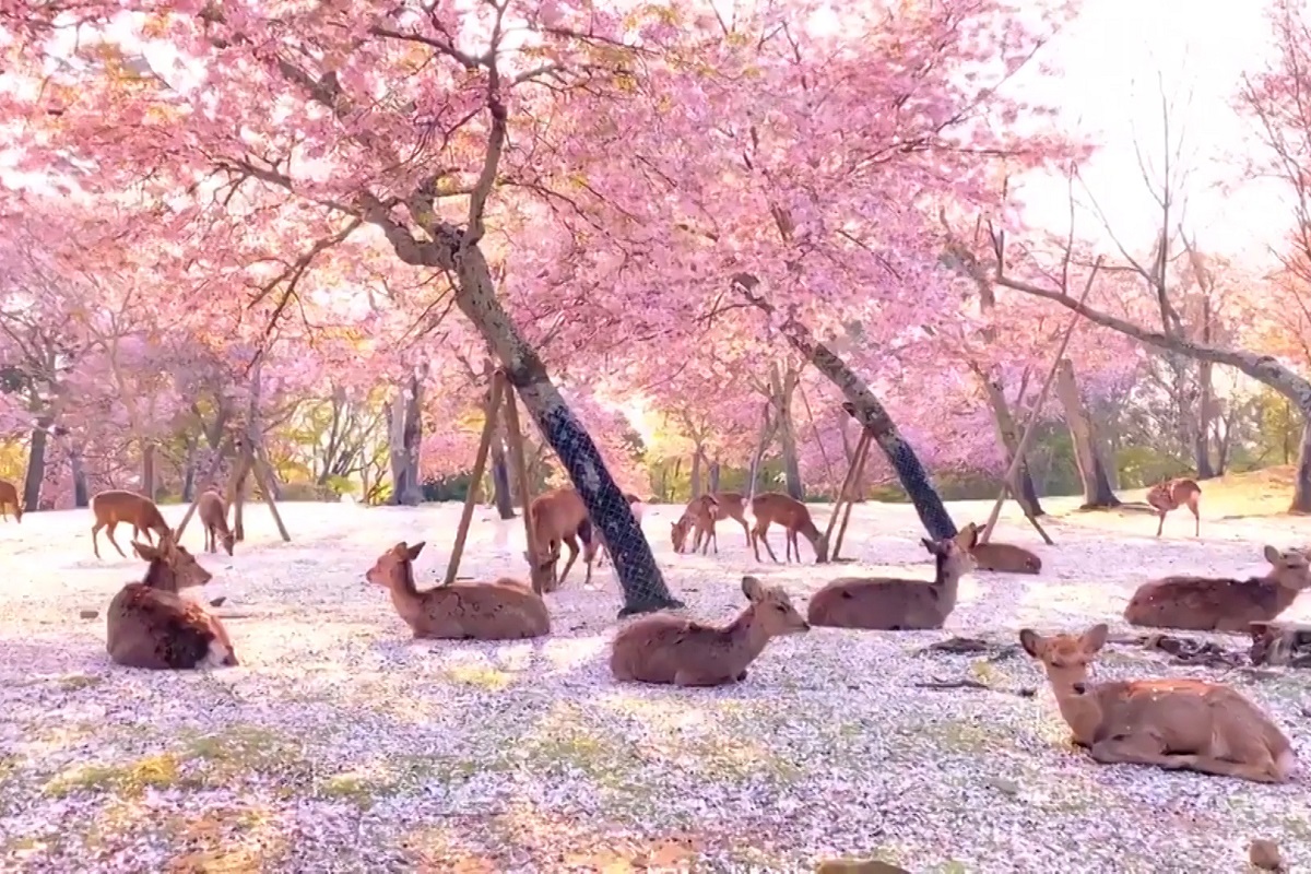 Há cenas que nos marcam a alma. No vídeo aqui trazido, diversos cervos descansam sob a bela sakura em flor no parque de Nara, no Japão.