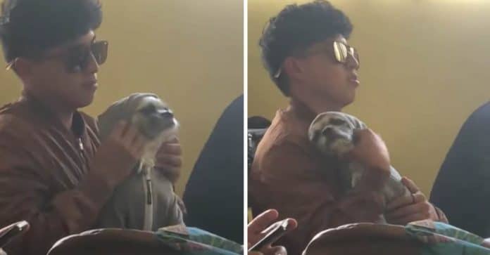 Como pode ser visto no vídeo postado no TikTok , o jovem estava sentado em sua mesa com seu cachorro nos braços enquanto a acomodava e a mantinha aquecida com o pequeno moletom que ela usava.
