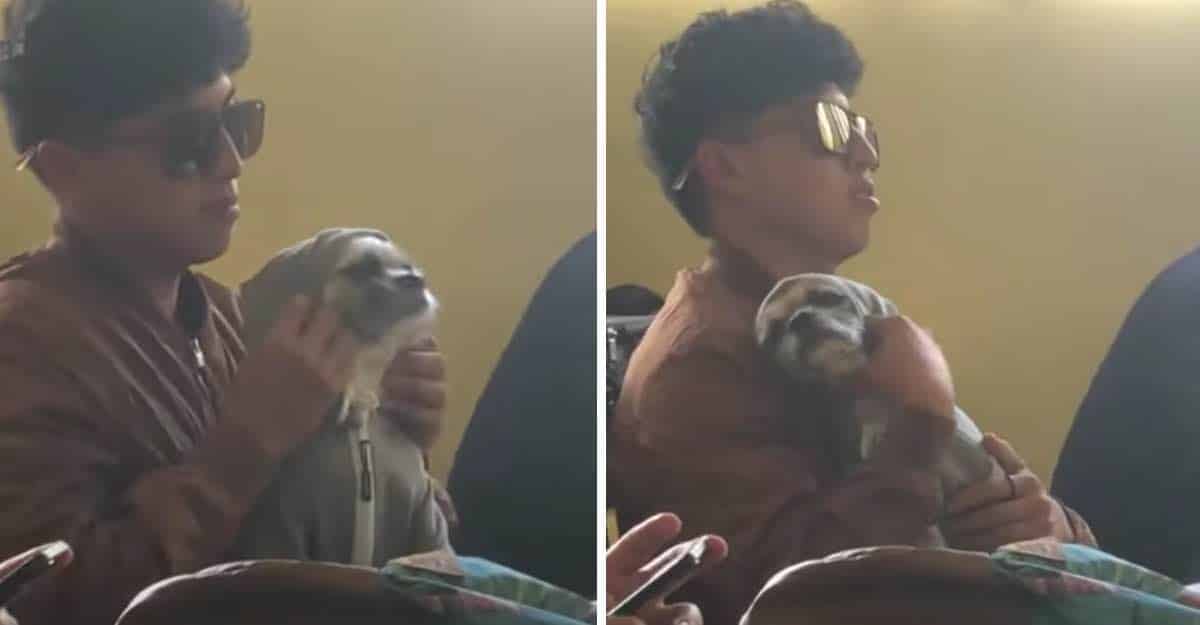 Como pode ser visto no vídeo postado no TikTok , o jovem estava sentado em sua mesa com seu cachorro nos braços enquanto a acomodava e a mantinha aquecida com o pequeno moletom que ela usava.