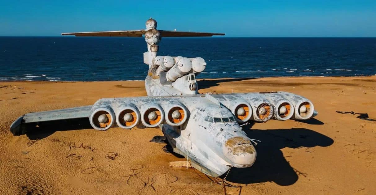 Ecranoplano, um dos aviões mais exóticos do mundo e maior que o Boeing 747, foi abandonado na praia