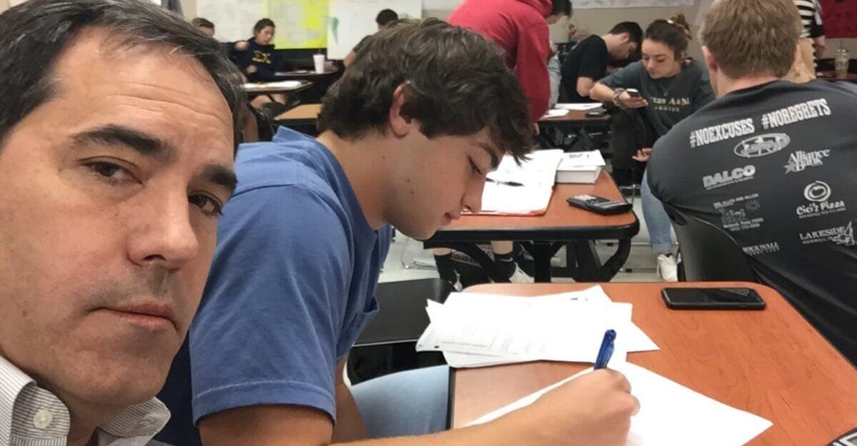 Então o pastor de Rockwall, Texas, Estados Unidos, disse a seu filho que se ele não parasse seu mau comportamento na aula, ele teria que acompanhá-lo e sentar ao lado dele na escola.