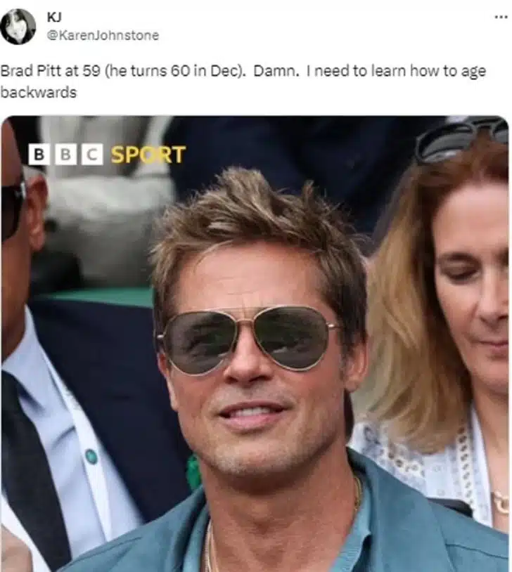 “Brad Pitt aos 59 anos (fará 60 em dezembro). Deus, eu preciso aprender a envelhecer ao contrário.” Disse outra.
