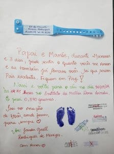 Ele conta que uma mãe perdeu o seu bebê após 21 semanas e 3 dias de gestação em virtude de uma grave infecção. A equipe de enfermagem, atenta ao grande valor humanitário do seu trabalho, sensibilizou-se e escreveu uma cartinha de despedida aos pais, em nome do bebê.