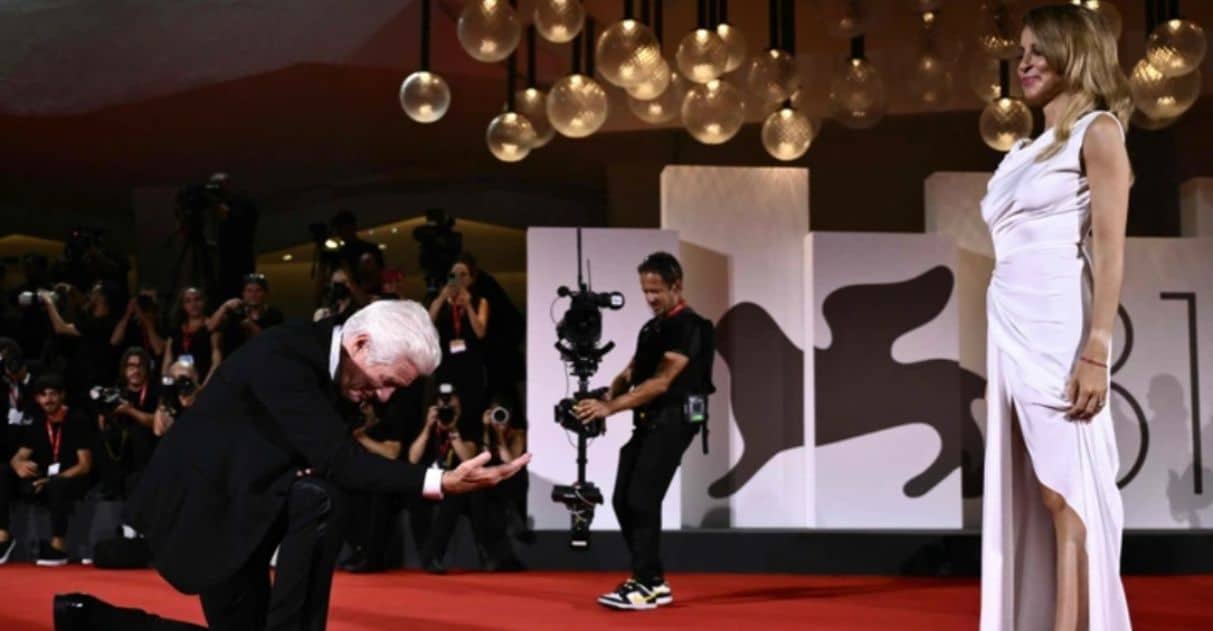 Durante o Festival de Cinema de Veneza 2024, o ator emocionou a todos ao se ajoelhar diante de Alejandra, que tem 41 anos, em um gesto inesperado e cheio de ternura no tapete vermelho.