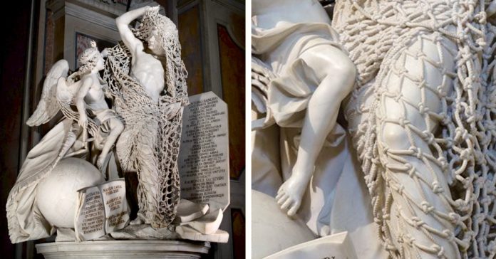 A escultura foi feita em um único bloco sólido de mármore e nos apresenta uma rede de pesca, esculpida com detalhes delicados e inacreditáveis, colocada sobre um homem, de frente para um anjo. A delicadeza e o detalhamento da rede se tornaram legado do artista e, ao longo dos séculos, deixaram maravilhados quem viu a escultura.