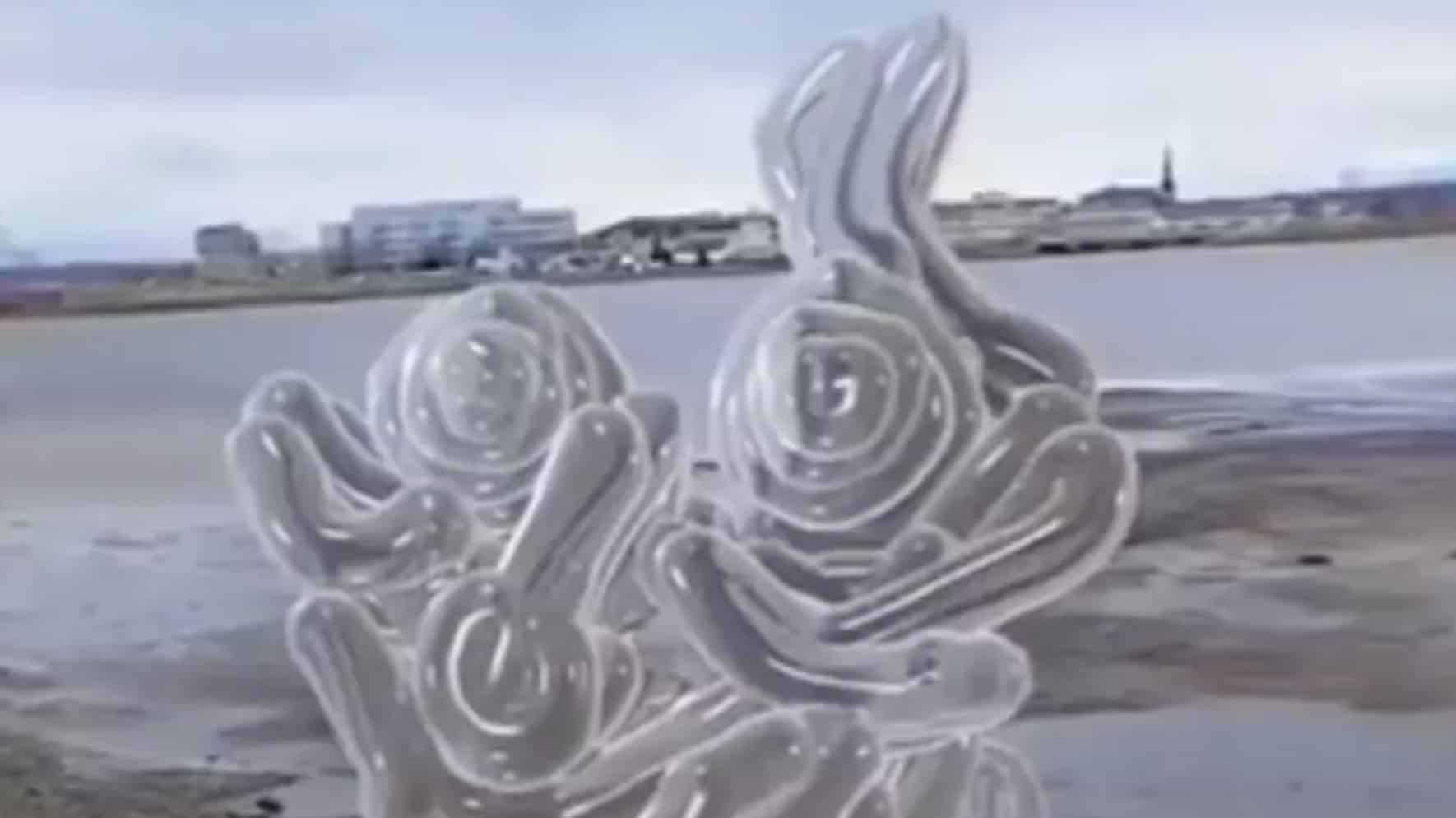O clipe alterna cenários comuns — estrada, praia, varanda, floresta — enquanto camadas translúcidas em redemoinho distorcem a imagem; linhas claras surgem e somem, e as formas às vezes lembram rostos.