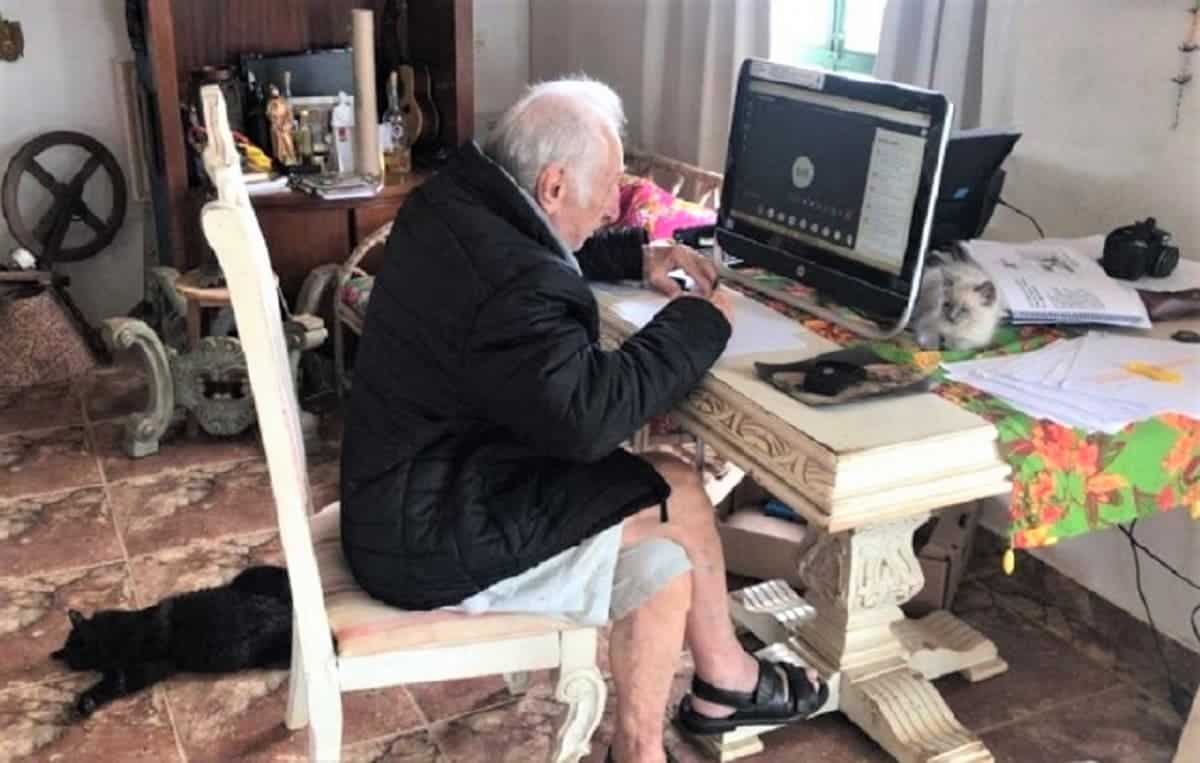 Com 92 anos e em pleno isolamento por causa da pandemia, ele cursa o terceiro ano de Arquitetura, sente a falta do contato presencial com os colegas de sala, mesmo assim ele “superou os desafios” impostos pela quarentena para ter que estudar via computador e com aulas online.