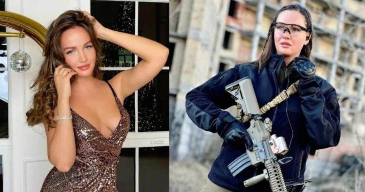 A modelo e Miss ucraniana Anastasiia Lenna está deixando de lado suas fotos nas passarelas e aderindo fotos em trajes de guerra em suas redes sociais.