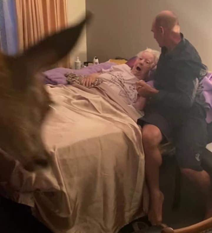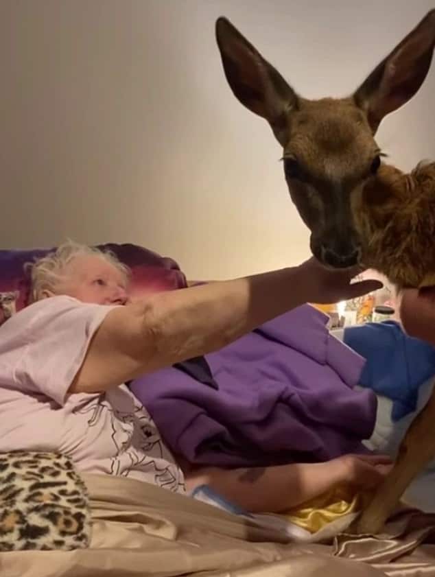 Uma mulher compartilhou o momento emocionante em que surpreendeu sua mãe obcecada pelo personagem Bambi com a visita de um adorável cervo enquanto ela estava sob cuidados paliativos.