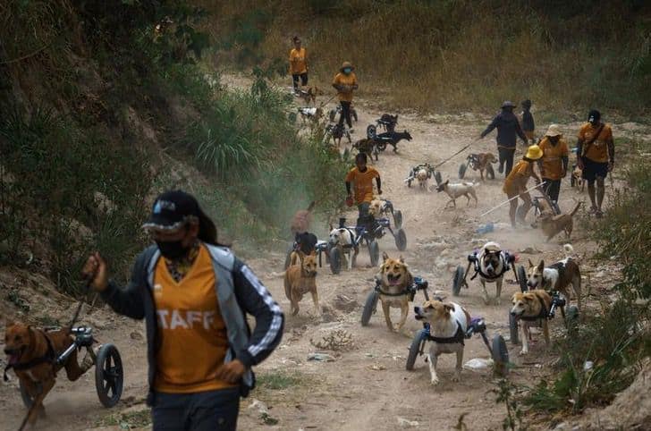 Um abrigo de animais preza pela liberdade dos cachorros, mesmo que eles tenham dificuldades de locomoção.