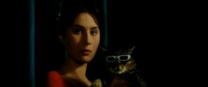 Um vilarejo, microcosmo para a nossa sociedade, recebe a visita de um mágico, uma bela jovem e seu gato de óculos escuros. Com poderes especiais, o felino vê os seres humanos com cores diferentes, de acordo com o caráter e os sentimentos deles, por exemplo, um casal de namorados em intensa cor vermelha, os hipócritas e mentirosos em roxo, resultando em um show de cores vibrantes que garantem ao filme uma estética verdadeiramente única, um tom antirrealista onde os personagens dançam sem música, um agradável sonho lúcido. É interessante constatar que os ilusionistas profissionais da trupe circense atuam exatamente retirando o véu de ilusão/falsidade que move os personagens, o que obviamente não os torna uma unanimidade em popularidade no local, já que o mero vislumbre do gato passa a incitar o pavor daqueles que, até por profissão, precisam defender mentiras. Mesmo sem saber o significado das cores diferentes, grande parte da população se desespera e corre para fugir do alcance dos pequeninos olhos. As crianças, puras, intocadas pela hipocrisia adulta, não se incomodam com esse fenômeno, assim como os avermelhados apaixonados, absortos em suas esperanças românticas. Enquanto os adultos caçam o gato, símbolo da queda de suas máscaras sociais, as crianças protegem o bichinho de todas as formas. Uma das alegorias mais bonitas da história do cinema, que nunca resvala no moralismo panfletário, estimulando uma profunda reflexão humanista.