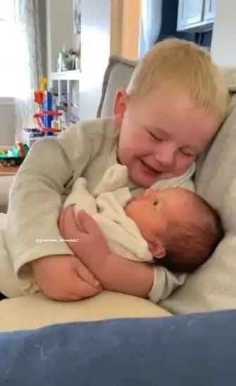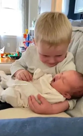Outro momento adorável de irmão aconteceu há quatro anos entre uma garotinha chamada Henley e sua irmã recém-nascida, Peyton. Em um vídeo, Henley, de um ano de idade na época, pode ser vista abraçada com seu novo irmão bebê em um berço.