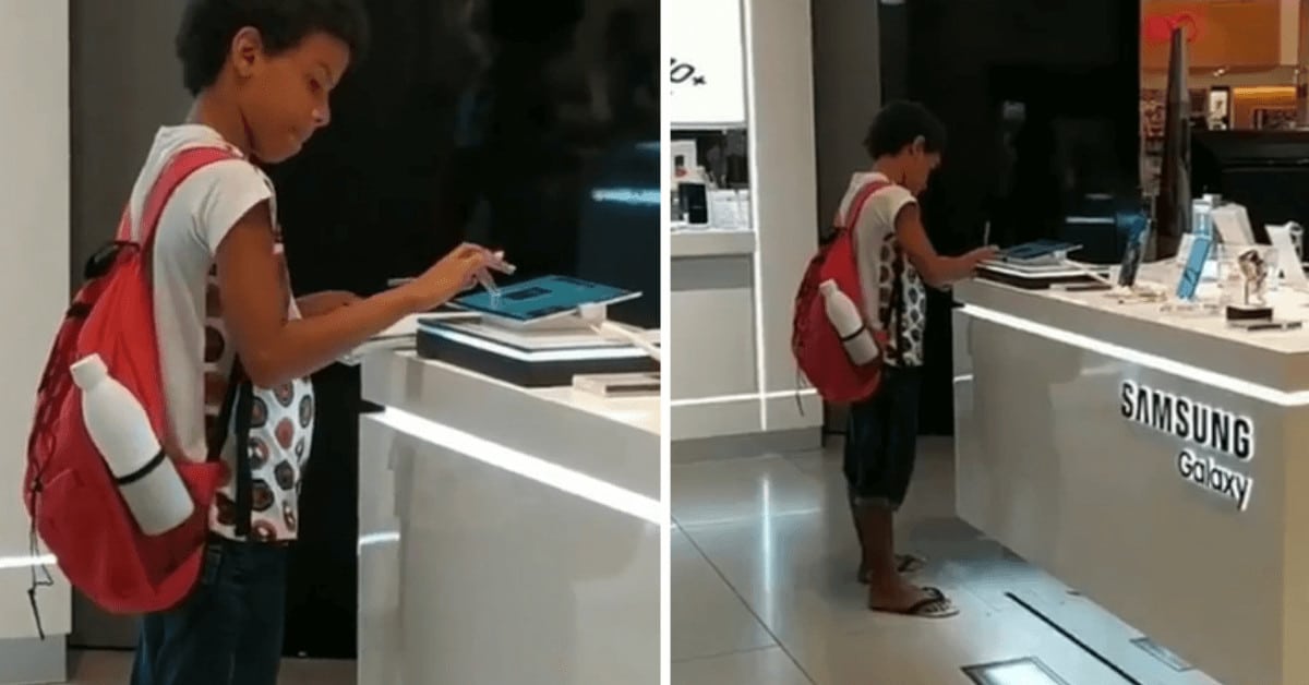 O rapazinho da foto, Guilherme Henrique dos Santos, comoveu a internet nos últimos dias ao ser flagrado pelo atendente em um Shopping de Recife (PE) enquanto utilizava um tablet do mostruário da loja para realizar uma pesquisa, um trabalho de geografia para a escola.