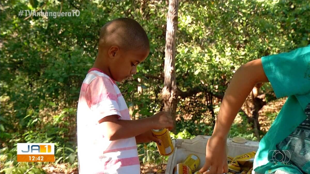 Davi, já faz planos para a festa: “Estou juntando latinhas para vender para fazer meu aniversário. Eu quero que tenha bolo, salgado, brigadeiro, balão pra minhas irmãs”. Seu aniversário será no dia 31.