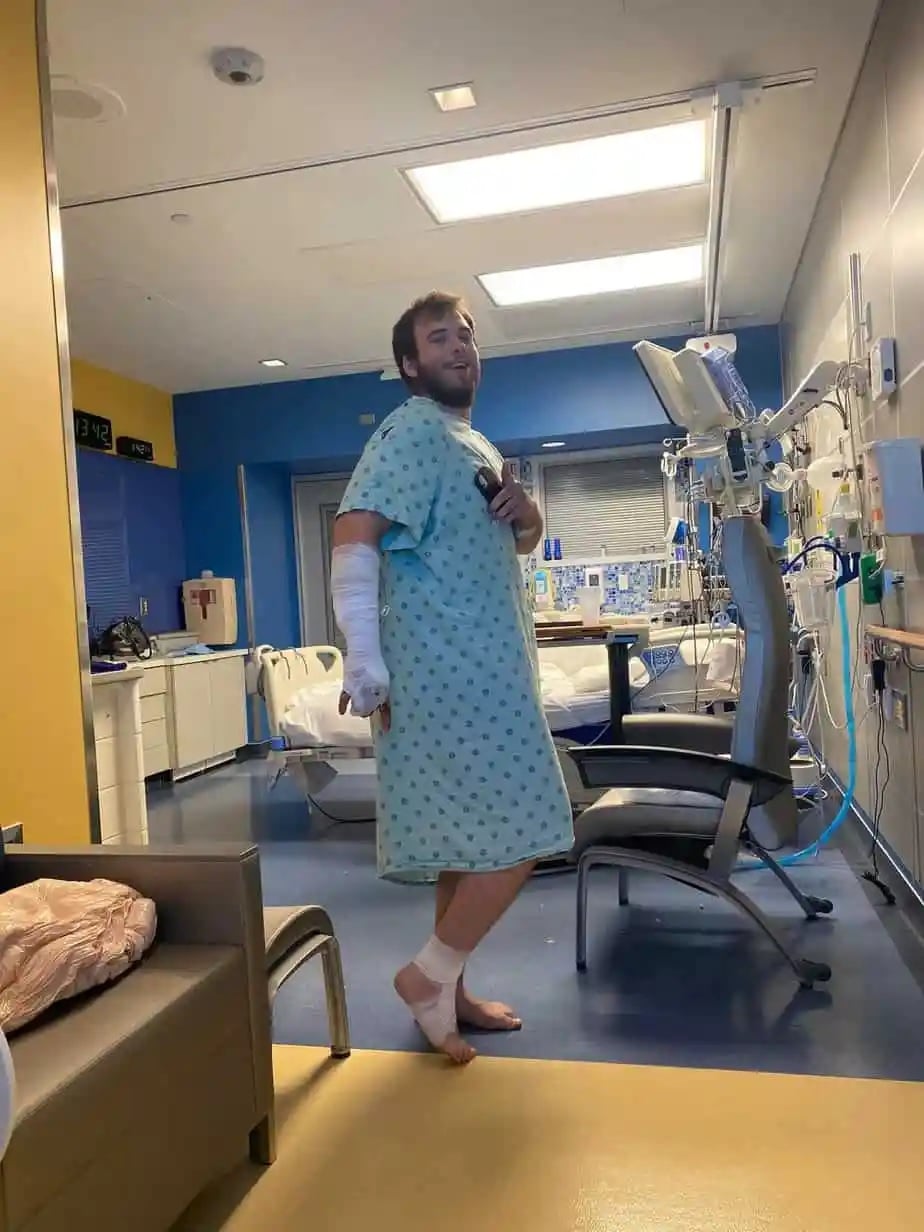 A polícia aplicou um torniquete em seu braço, que sangrava muito, e o levou ao Hospital Franciscano de Saúde em Lafayette. Mais tarde, ele foi transferido para Eskenazi em Indianápolis.