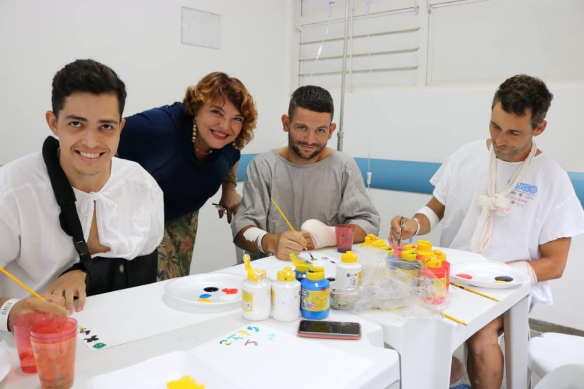 “A pintura é uma terapia alternativa, que proporciona muitos benefícios, como estimular a atividade cerebral, desestressar e melhorar a comunicação. A arteterapia permite o uso de tintas e cores, que liberam sentimentos, sejam eles de afeto, angústia, raiva, frustração, prazer ou amor. Isso faz muita diferença no atendimento e no acolher dos pacientes”, explica Flávia Zenha, coordenadora do Setor Psicossocial do Hospital de Urgências de Goiânia (HUGO) ao site Curta Mais.