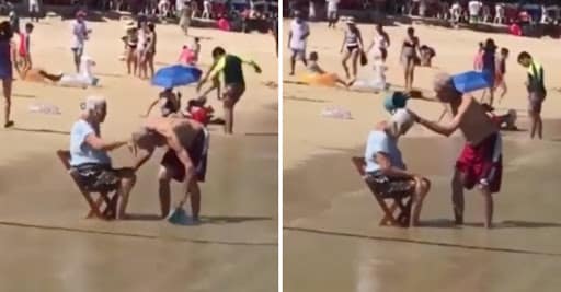 Um vídeo postado nas redes sociais, onde um senhor de idade ajuda a sua mulher a tomar banho na praia, por ter sua movimentação já limitada, viralizou ao mostrar esse carinho e paciência tão grande do casal, que ainda se divertem como jovens.