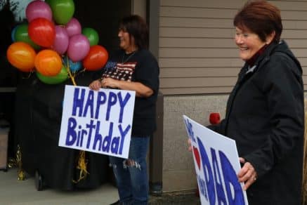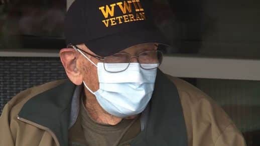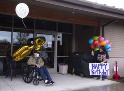 Como as visitas internas não são permitidas, de acordo com as restrições estaduais emitidas em março, a família de Lapschies o surpreendeu do lado de fora da casa dos veteranos para uma celebração discreta, observado o distanciamento social.