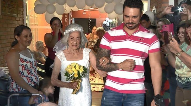 O casamento de Branca e Marcelino foi consumado em fevereiro de 2020. Na época, a casa de repouso se transformou por um dia em um salão de festas decorado especialmente para eles.
