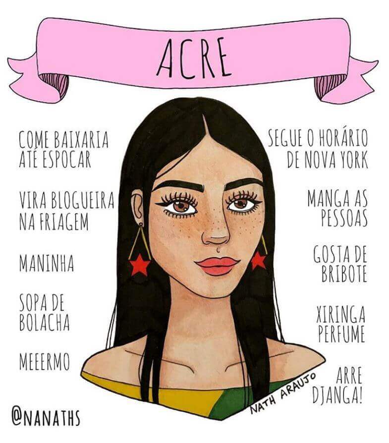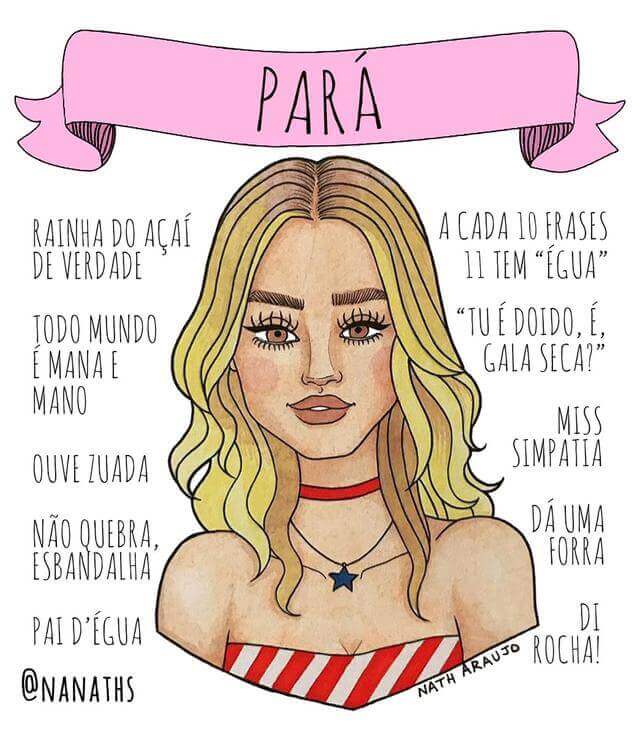 Dessa vez, Nath inovou e tem publicado, gradativamente, em sua conta, as ilustrações das mulheres de cada estado do Brasil.