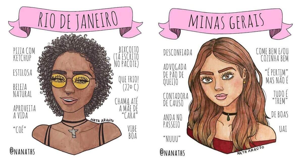 Dessa vez, Nath inovou e tem publicado, gradativamente, em sua conta, as ilustrações das mulheres de cada estado do Brasil.