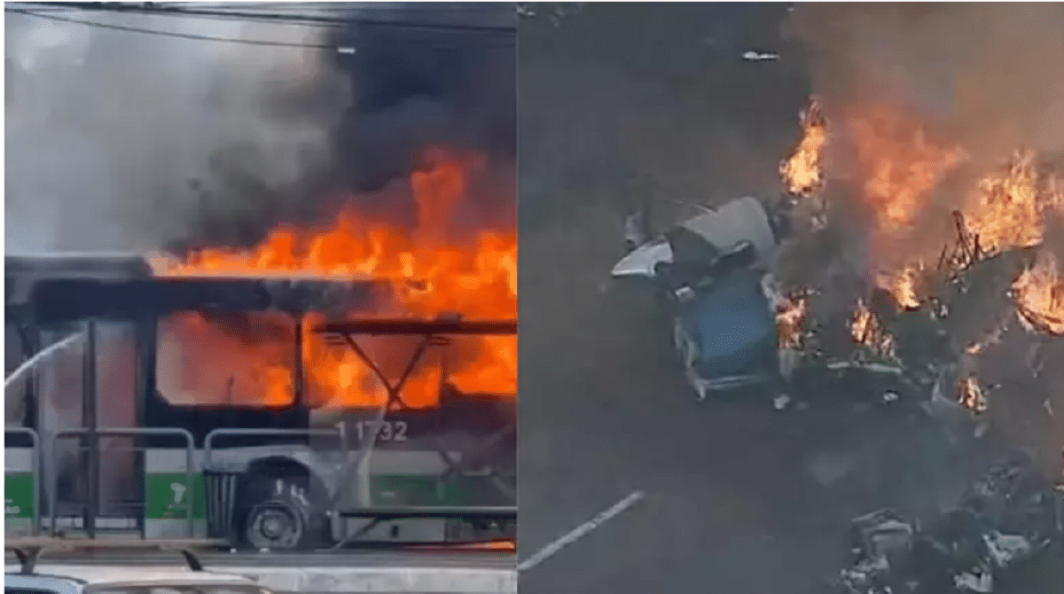 Também há feridos: um motoqueiro atingido por uma “peça” e uma mulher que estava no interior do ônibus. Os dois foram socorridos. “No momento da queda houve um incêndio que foi combatido pelo CBPMESP”, informou o Corpo de Bombeiros. Outras quatro pessoas com ferimentos leves foram encaminhadas a hospitais da região.
