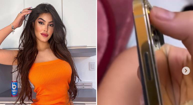 O iPhone de ouro de Drielly foi comprado durante uma viagem dela para Dubai no ano passado. De acordo com o site da marca, o celular custa R$ 11,5 mil.