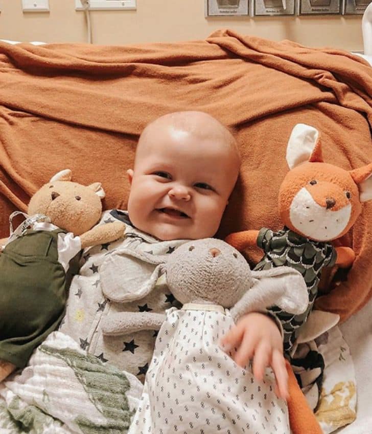 ‘A palavra ainda é tão difícil para mim digitar e ainda mais difícil para eu dizer. É muito raro, apenas 35 a 50 bebês americanos a contraem por ano. Temos um caminho muito longo pela frente começando com ele fazendo um porto, uma punção lombar, uma biópsia de medula óssea e começando a quimioterapia amanhã.