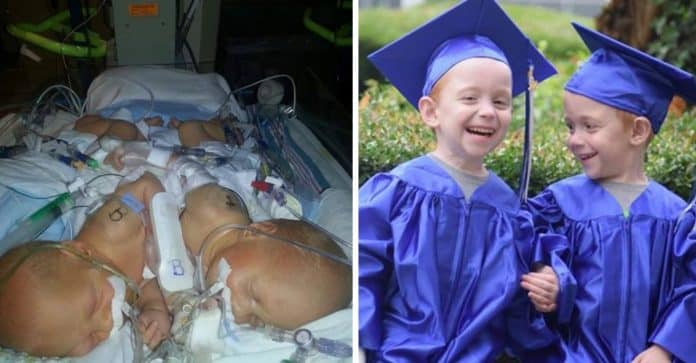 E hoje, após 5 anos de batalhas, esse mesmo perfil revelou que as crianças conseguiram superar uma meta que parecia impossível anos atrás: Conner e Carter conseguiram se formar no jardim de infância e começarão sua vida escolar juntos.