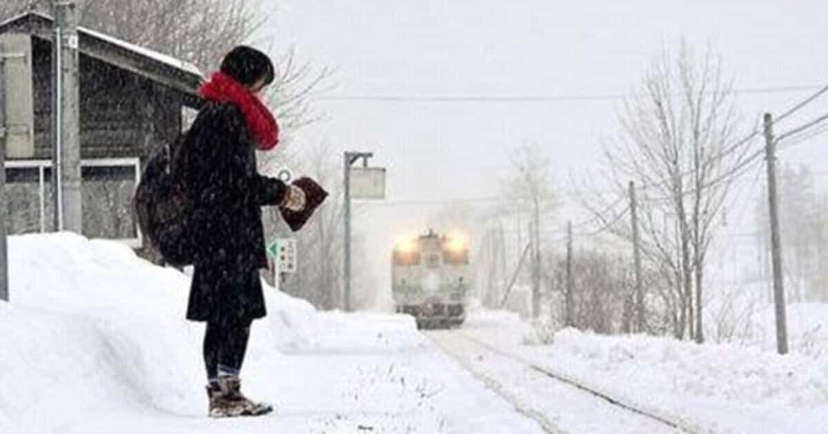 A estação de Kami-Shirataki, em Hokkaido, no Japão, é visitada por um trem duas vezes por dia, uma de manhã e outra à tarde, para que a estudante possa ir para a aula e chegar em casa a tempo.