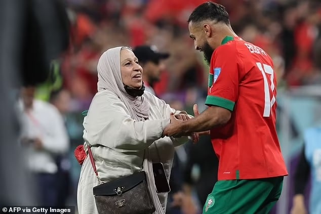 Sofiane Boufal, do Marrocos, convidou sua mãe para entrar em campo para comemorar com ela após a chocante vitória na Copa do Mundo sobre Portugal.