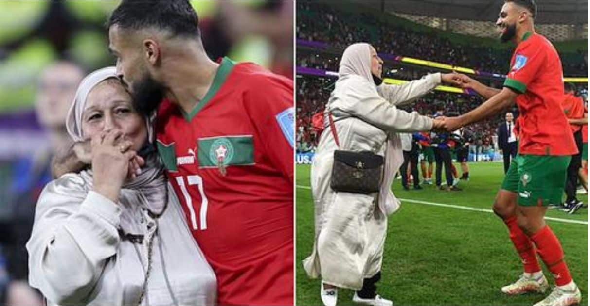 Sofiane Boufal, do Marrocos, convidou sua mãe para entrar em campo para comemorar com ela após a chocante vitória na Copa do Mundo sobre Portugal.