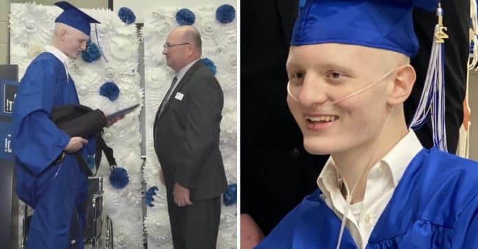 Na quinta-feira passada (18), um jovem de Rogers, no Arkansas (EUA), diagnosticado com câncer terminal e com pouco tempo restante de vida, concentrou suas últimas energias para se formar no ensino médio.
