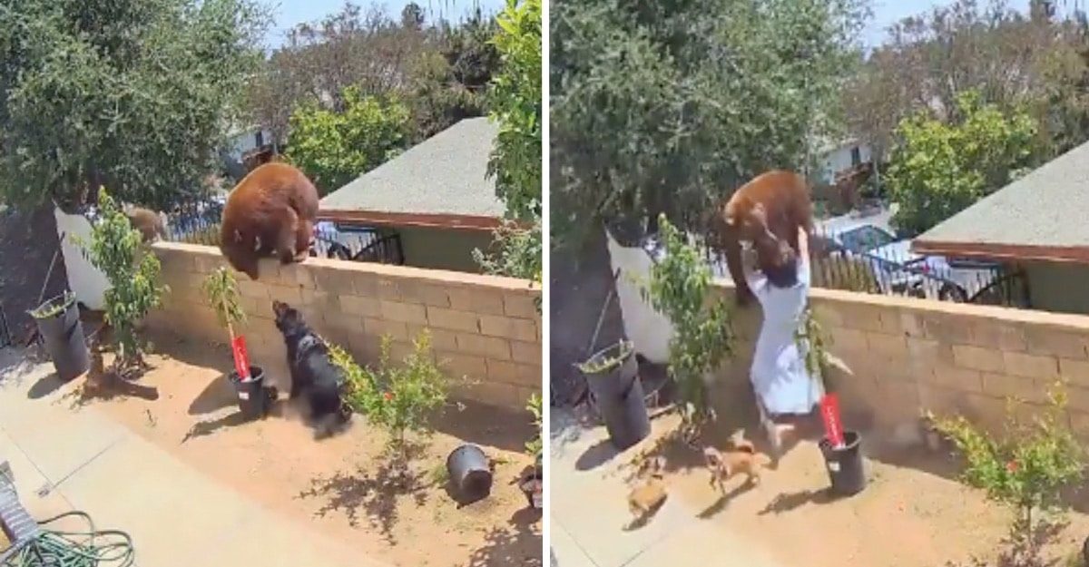 Quando Hailey, de Los Angeles, EUA, percebeu a aflição que seus cachorros estavam tendo no quintal, ela correu para ver o que estava acontecendo. Sem pensar em como uma mãe urso com filhotes pode ser perigosa, ela, com as próprias mãos, a afastou de seus amados animais de estimação.