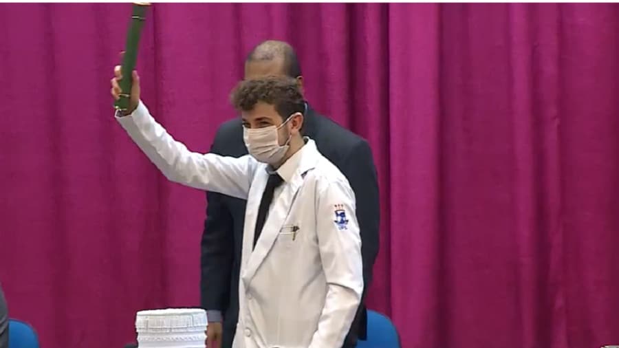 Devidamente graduado e com o diploma em mãos, o sergipano disse em entrevista à TV Globo que não está apressado em fazer especialização e que deseja atuar de imediato na linha de frente contra o novo coronavírus.