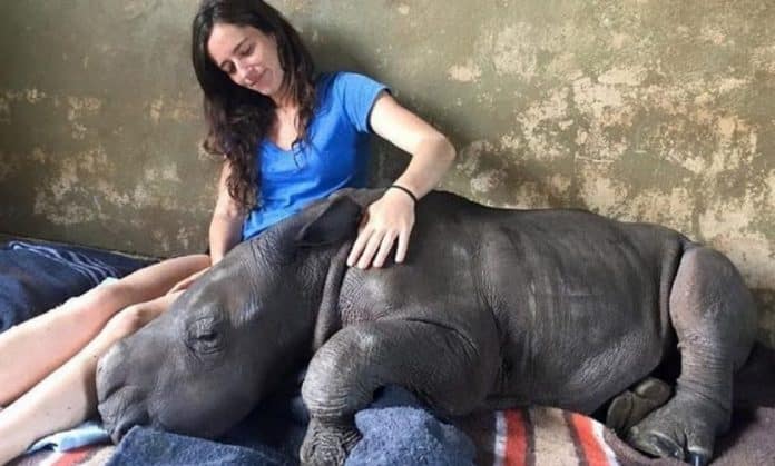 A pequena Jamila, a bebê rinoceronte que perdeu a mãe para caçadores, foi resgatada no final de 2018, e logo ganhou o coração da cuidadora. Com poucas semanas de vida, Jamie cuidou da pequena, dormindo com ela durante a noite para protege-la do frio e dando aconchego, e acabou se tornando além de mãe adotiva, melhor amiga e companheira do animal.