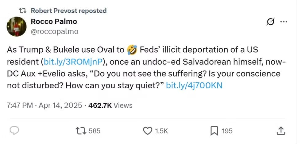 Condenou a deportação de imigrantes, incluindo um caso específico em que um residente americano foi erroneamente enviado a El Salvador. Também compartilhou críticas à rejeição de refugiados sírios, afirmando que “Jesus chora” diante desse tipo de exclusão.