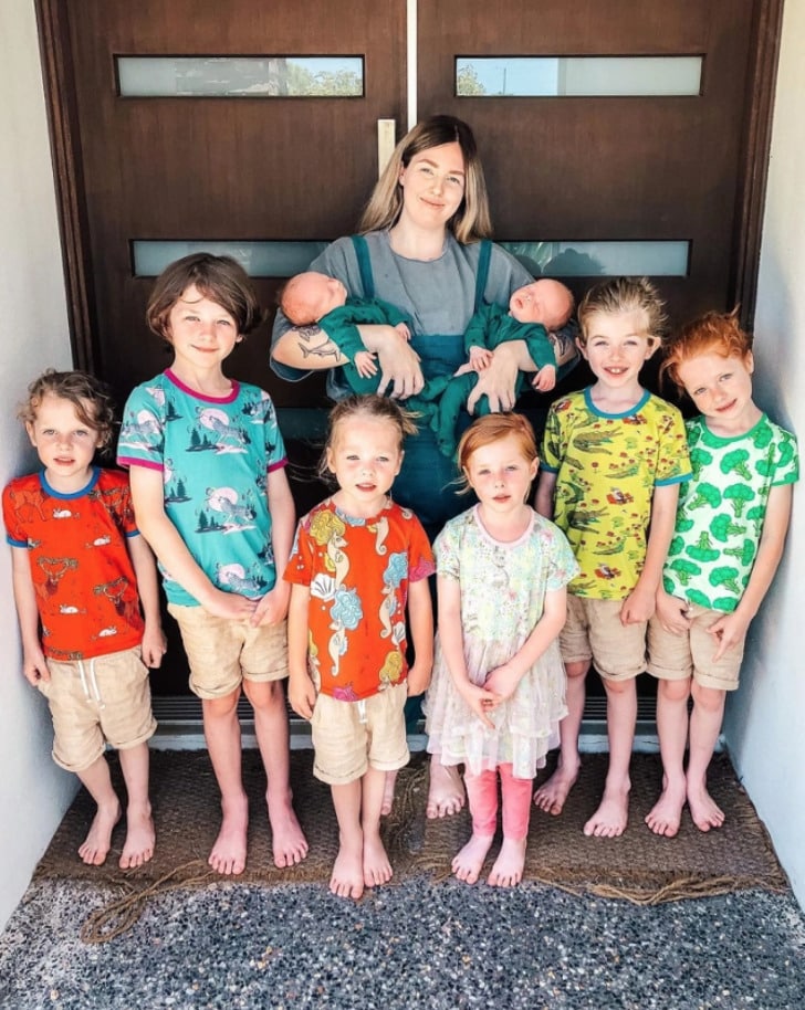 Chloe Dunstan, de 27 anos, australiana, já tinha três filhos logo vieram mais três e depois gêmeos. São ao todo oito filhos, são muito amados e bem cuidados pela mãe, que divide sua vida com seus inscritos no Youtube.