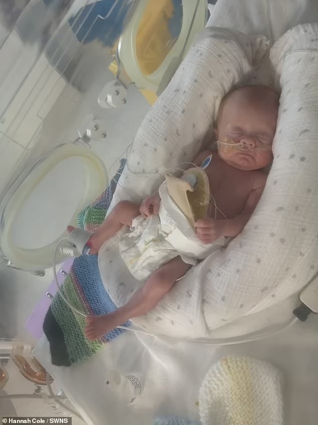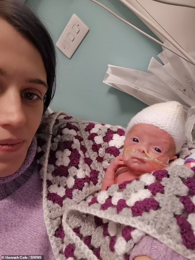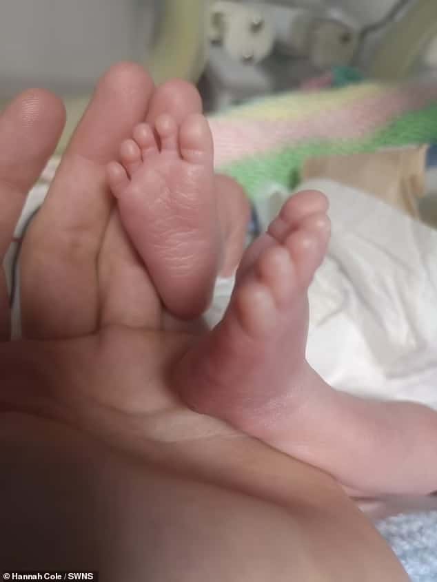 Hannah Cole, 27, foi internada no Bradford Royal Infirmary (BRI), na Inglaterra, depois que sua bolsa estourou prematuramente, com 20 semanas de gestação.