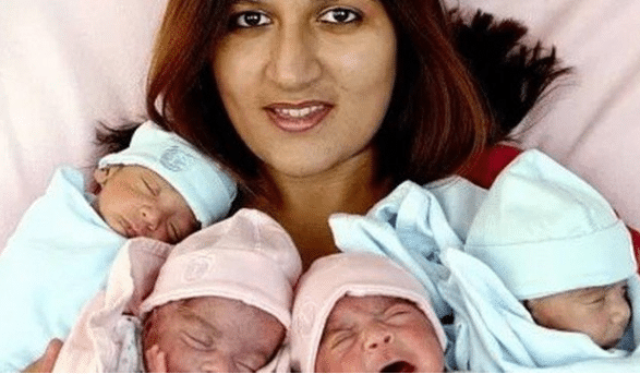 Shabnum, que já tinha uma filha de seis anos, deu à luz quadrigêmeos concebidos naturalmente em 2006.