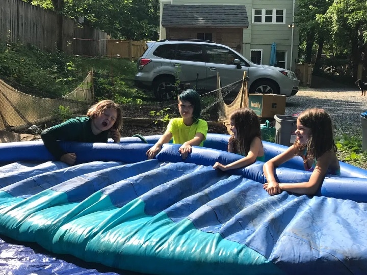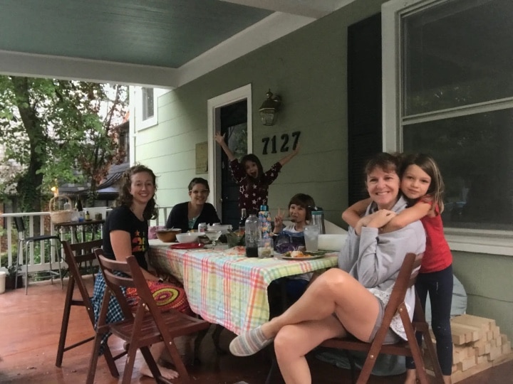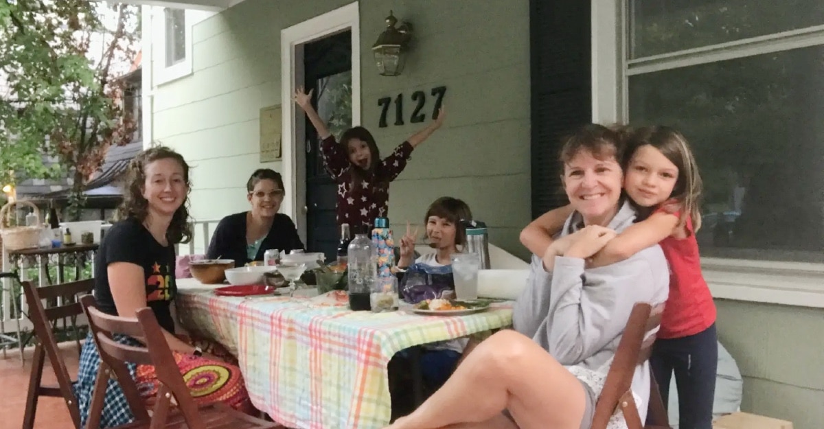 Jen, uma das inquilinas, é professora de esportes. Ela mesma criou uma espécie de academia no quintal da casa , onde as quatro mães praticam atividades todas as tardes e as crianças brincam no trampolim . As mulheres até se reuniram para criar um “fundo de emergência” para usar se alguém da casa adoecesse no hospital.