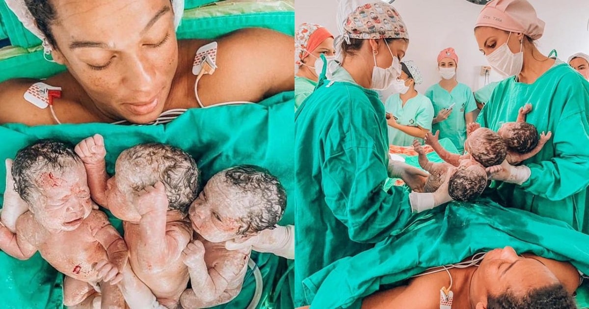 Um parto de trigêmeos é sempre raro mas neste caso, mas uma estranha raridade envolve a gestação dessa mãe: ela teve uma espécie de progressão aritmética de filhos.