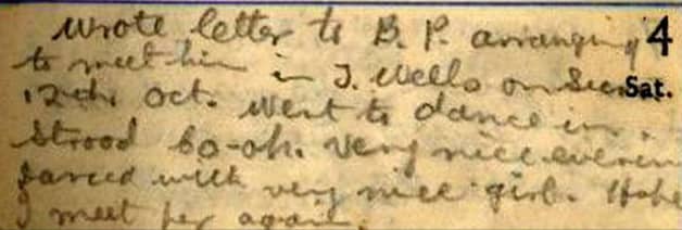 O inglês, afirmouo ao jornal Daily Mail Online que lembra exatamente do momento em que os dois se cruzaram, num baile. Foi em 1941 (casaram em 1943) e no diário escreveu: “Foi uma noite muito agradável. Dancei com uma garota muito legal. Espero encontrá-la novamente”.