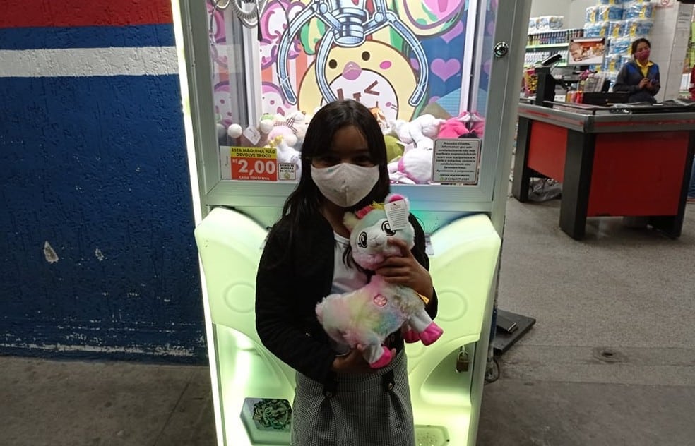 “Dos ursinhos que eu consegui na máquina, tem dois que gostei muito. Peguei uma zebrinha e um urso panda e amo os dois. Quero doar mais bichinhos, mas pretendo ficar com estes em especial”, completou.