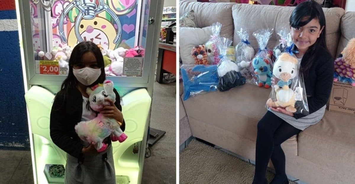 A menina de Mairinque (SP) gostou tanto do jogo que já pegou 58 ursinhos. Com tantas pelúcias à disposição, ela resolveu destinar boa parte delas para uma causa solidária.