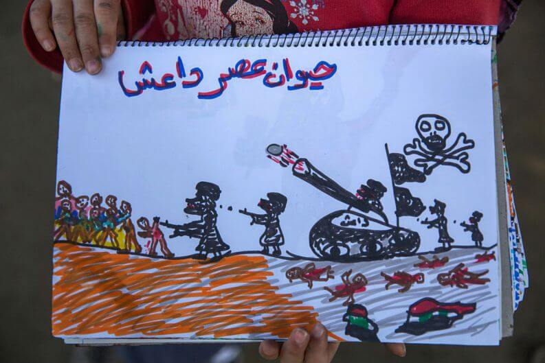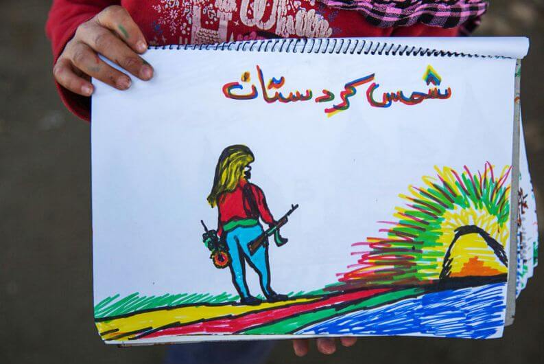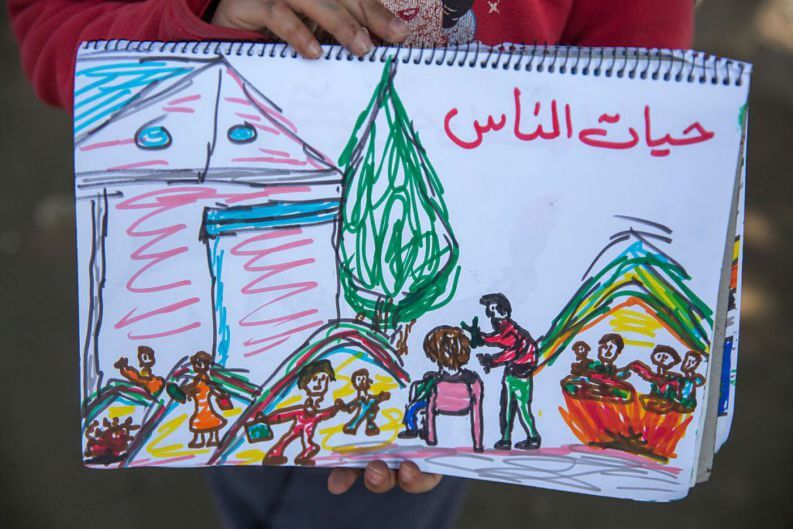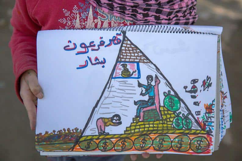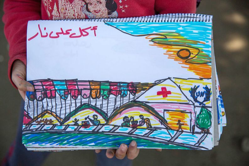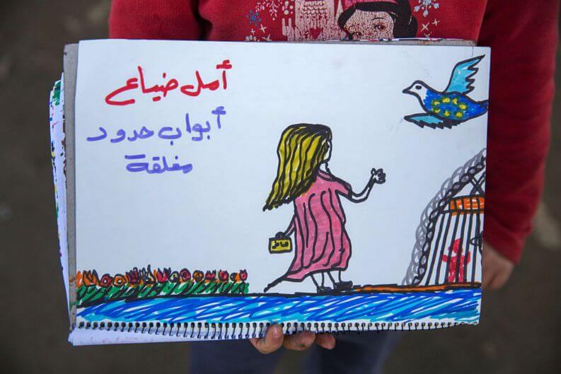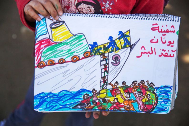 Refugiada na Grécia, a criança teve os seus desenhos registrados por um fotógrafo no campo de refugiados em Idomeni. O país foi um dos principais destinos dos refugiados sírios durante 2016.