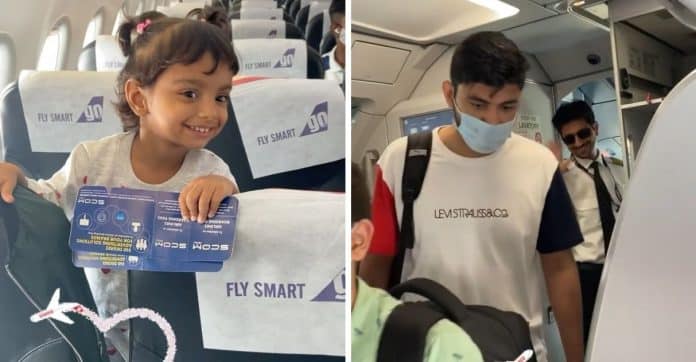 Shanaya Mothiar, de Nova Délhi (Índia), embarcou em sua primeira viagem de avião quando, já na aeronave, descobriu que seu pai era o piloto.