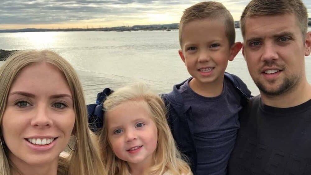 Foto de capa: Charley-Anne Semple com o marido, Danny, e dois filhos, Tyler e Annabella – que estavam em casa quando ela desmaiou — Foto: Charley-Anne Semple