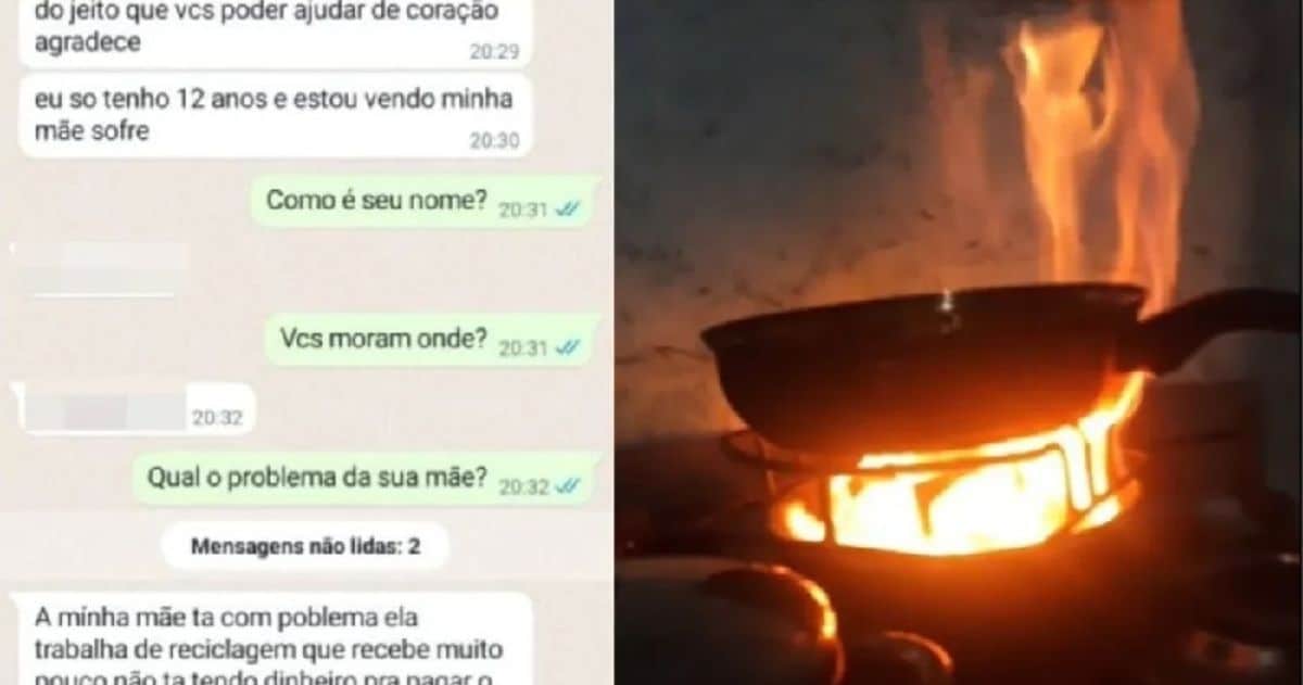 “Acabou o gás e a gente não tem muita comida”, ressaltou o menino nas mensagens.