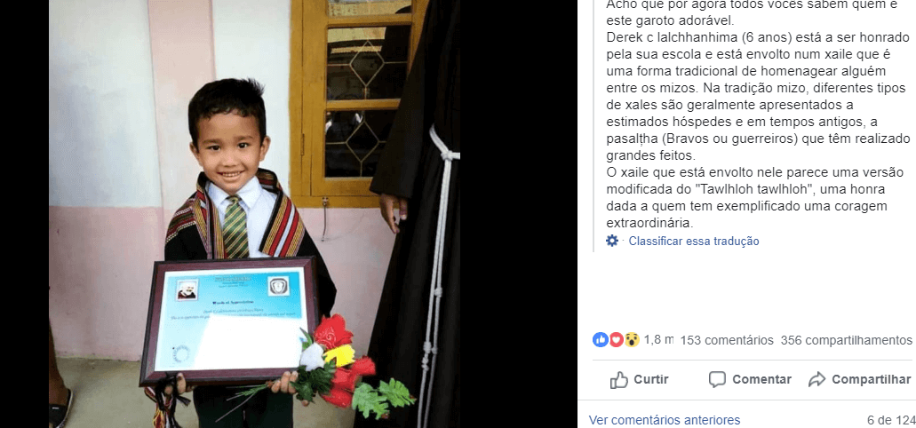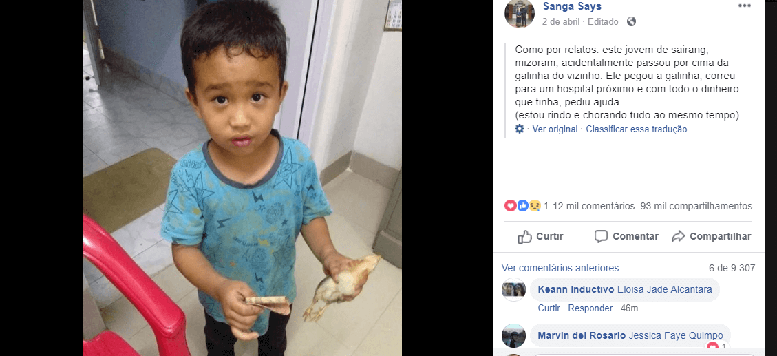 Um menino de seis ganhou holofotes das redes sociais após sua foto viralizar na web. Trata-se do pequeno Derek C. Lalchhanhima, de Mizoram, 6 anos, que, na Índia, atropelou acidentalmente uma galinha do vizinho enquanto andava de bicicleta.